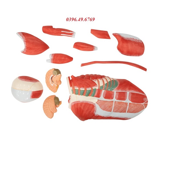 - Bộ Mô hình giải phẫu hệ cơ toàn thân bao gồm 29 bộ phận có thể tháo rời: Cơ thể, xương sọ, não (2 phần), thành ngực và bụng, cánh tay phải, cánh tay trái (5 phần), chân phải, chân trái (10 phần), phổi (2 phần). ), tim (2 phần), gan, dạ dày và ruột.