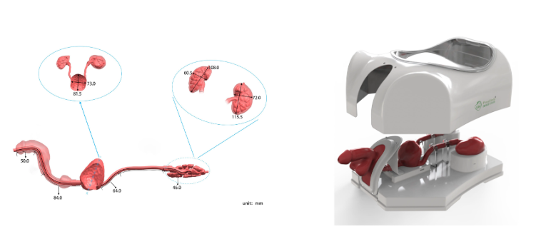 Dựa trên dữ liệu CT hệ tiết niệu người trưởng thành, mô hình mô phỏng chính xác vị trí, độ cong, và độ đàn hồi của đường tiết niệu, giúp thao tác nội soi mượt mà và sát với thực tế lâm sàng.