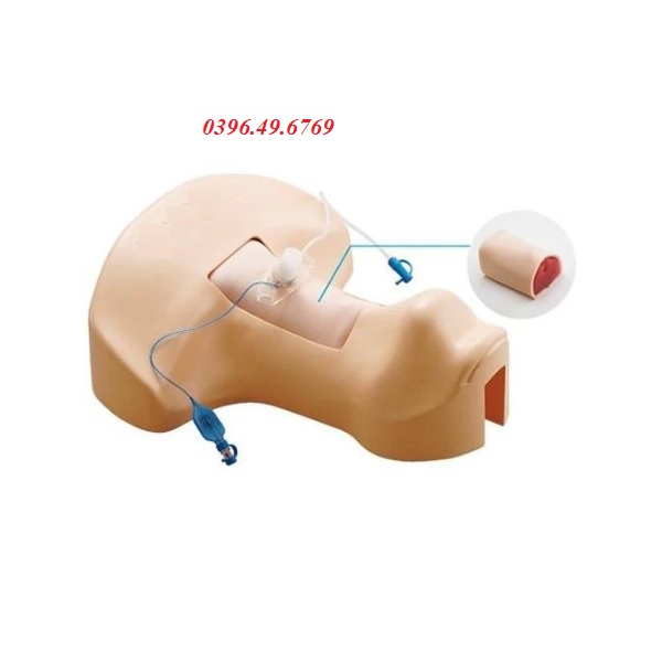 - Mô phỏng bệnh nhân ở tư thế nằm ngửa với cổ mở rộng, thiết bị huấn luyện phẫu thuật mở khí quản cho phép người dùng xác định vị trí vết mổ thích hợp đồng thời xác định vị trí động mạch và quan sát tình trạng trong khí quản từ đầu..