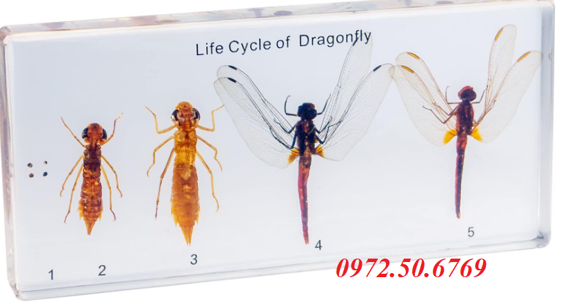 Mô hình trực quan mô phỏng toàn bộ các giai đoạn phát triển của chuồn chuồn, từ trứng – ấu trùng – nhộng đến khi trưởng thành.
